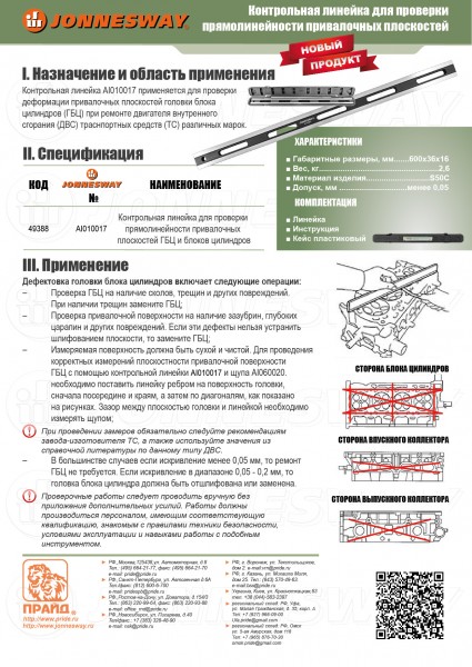 Теги: AI010017 Контрольная линейка для проверки прямолинейности привалочных плоскостей ГБЦ и блоков цилинд