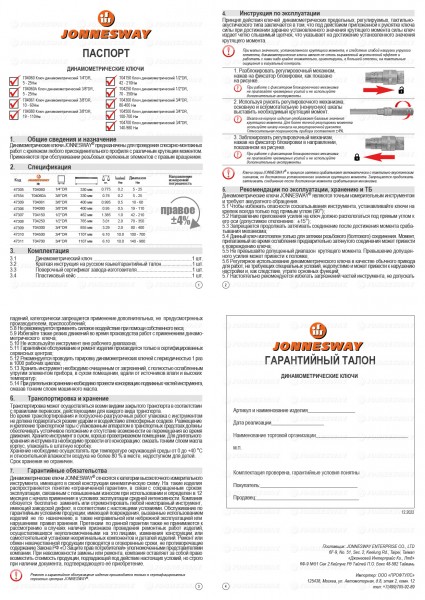 Динамометрические ключи JONNESWAY® серии "Т04" внесены в ГРСИ (Государственный реестр средств измерений).