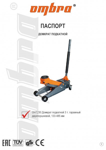ОНТ 230 Гидравлический двухплунжерный подкатной гаражный домкрат грузоподъемностью 3 т. Применяется в качестве скоростного подъемного механизма в условиях предприятий автотехобслуживания, шиномонтажных мастерских. Высота подхвата 133 мм, высота подъема 485 мм, масса 30,7 кг. Благодаря большой массе и габаритам, домкрат устойчив и мобилен. Домкрат поставляется в картонной упаковке с информационной наклейкой. Резиновая опора в комплекте.