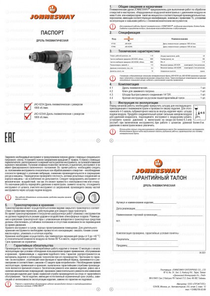 Пневматическая скоростная дрель пистолетного типа с высокоточным ключевым трехкулачковым патроном. Применяется для обработки отверстий диаметром до 10 мм в различных материалах. В отличие от модели JAD-6234, модель JAD-6234A комплектуется планетарной передачей привода шпинделя с дополнительным сателлитом, Что заметно снижает вибрации и увеличивает ресурс изделия. Дрель снабжается переключателем направления вращения. При работе обязательно использовать средства защиты органов зрения и слуха.