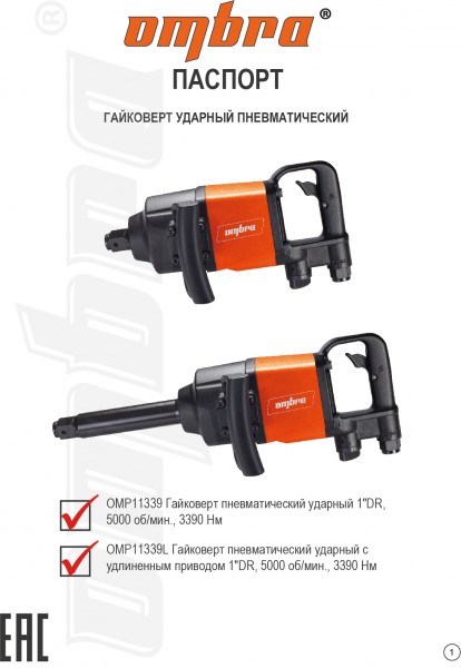 Теги: Гайковерт пневматический ударный с удлиненным приводом 1"DR, 5000 об/мин., 3390 Нм