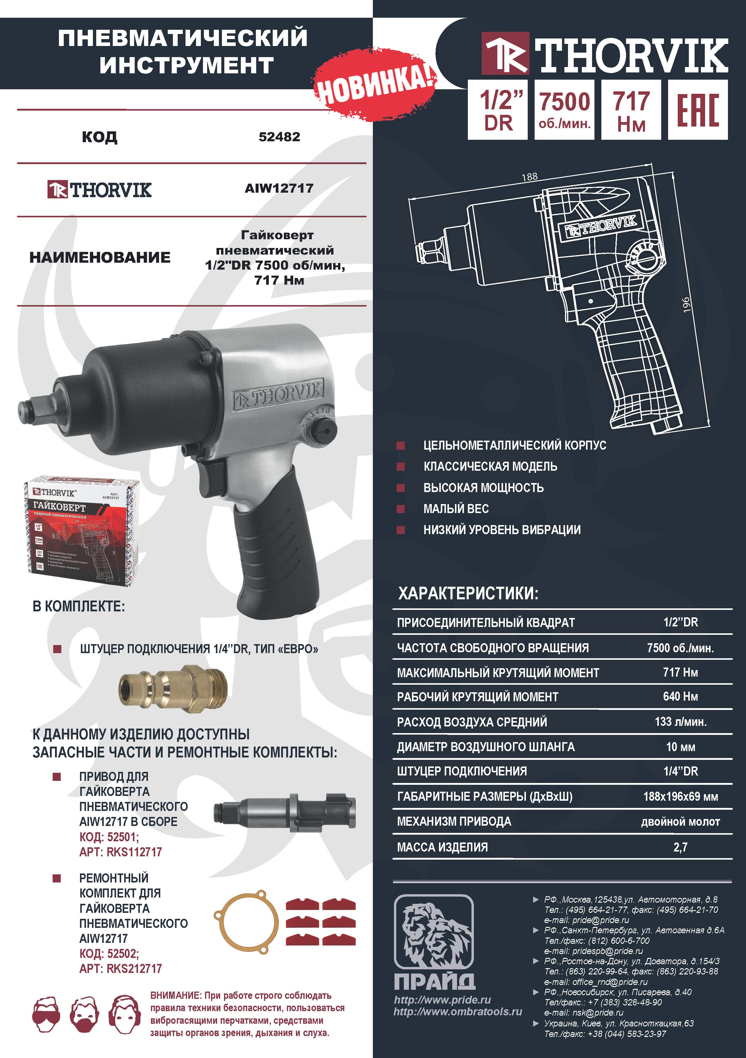 Теги: Гайковерт ударный пневматический 1/2"DR 7500 об/мин, 717 Nm