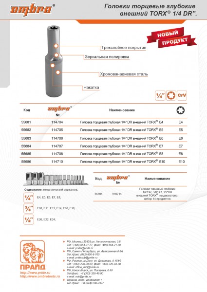 Применяется для монтажных работ с болтами, имеющими рабочий профиль EXTERNAL TORX® (Е).