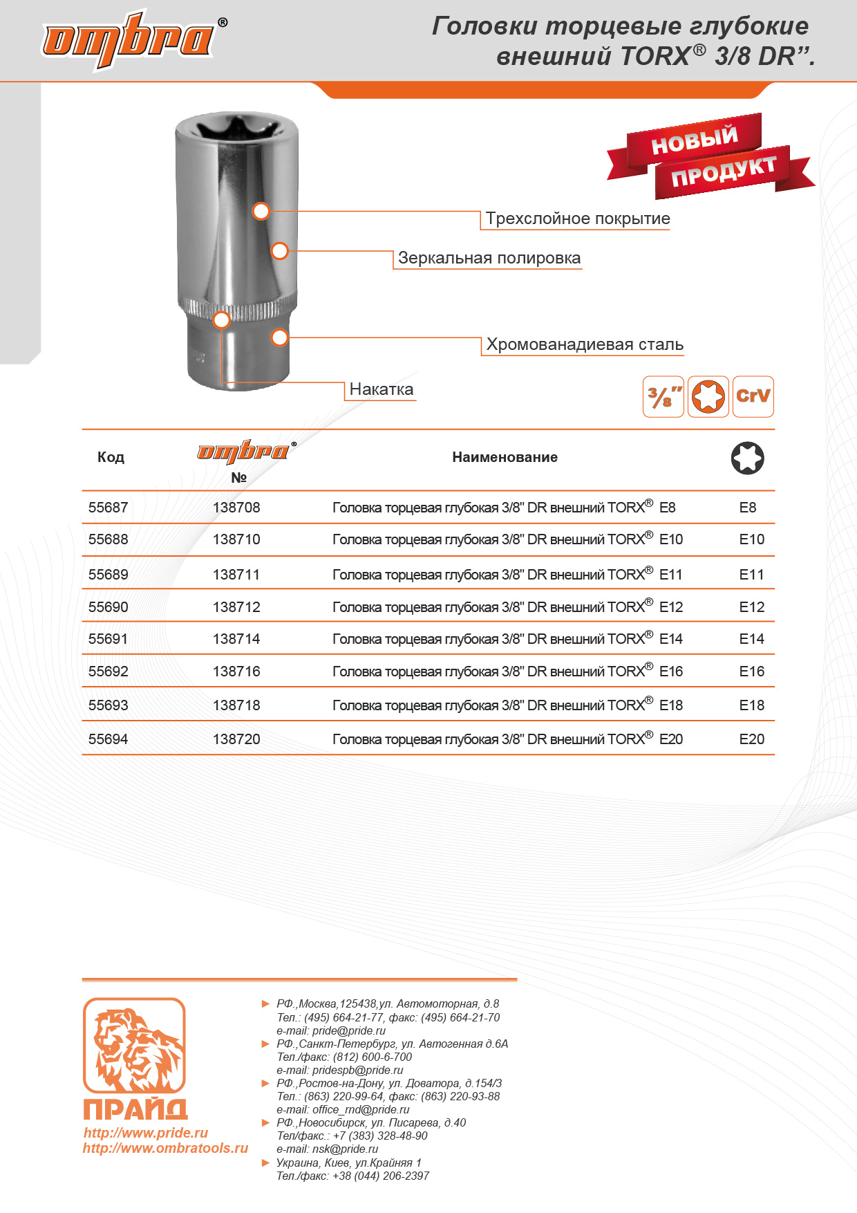 Головка торцевая глубокая 3/8"DR, внешний TORX, E11