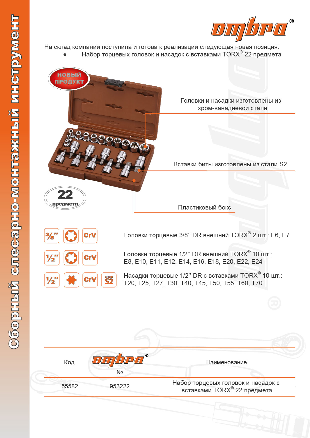 Теги: Набор головок торцевых, внешний TORX®, и насадок с вставками-битами TORX®, 22 предмета