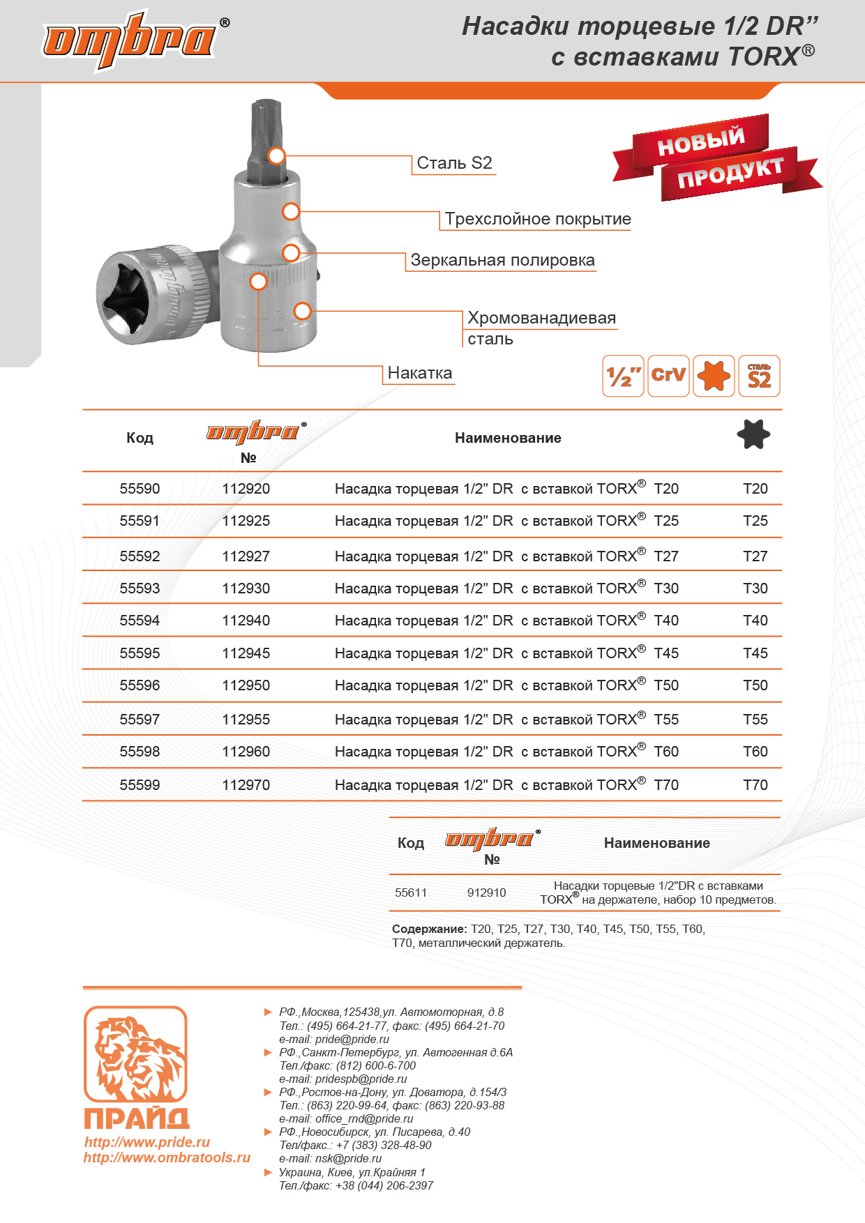 Комплектация– Головки торцевые и принадлежности 1/2" Головки торцевы..