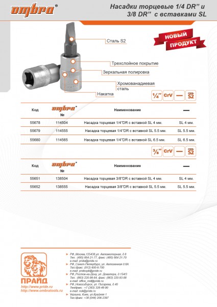 Теги: Насадка торцевая 1/4"DR с вставкой-битой шлицевой, SL5.5