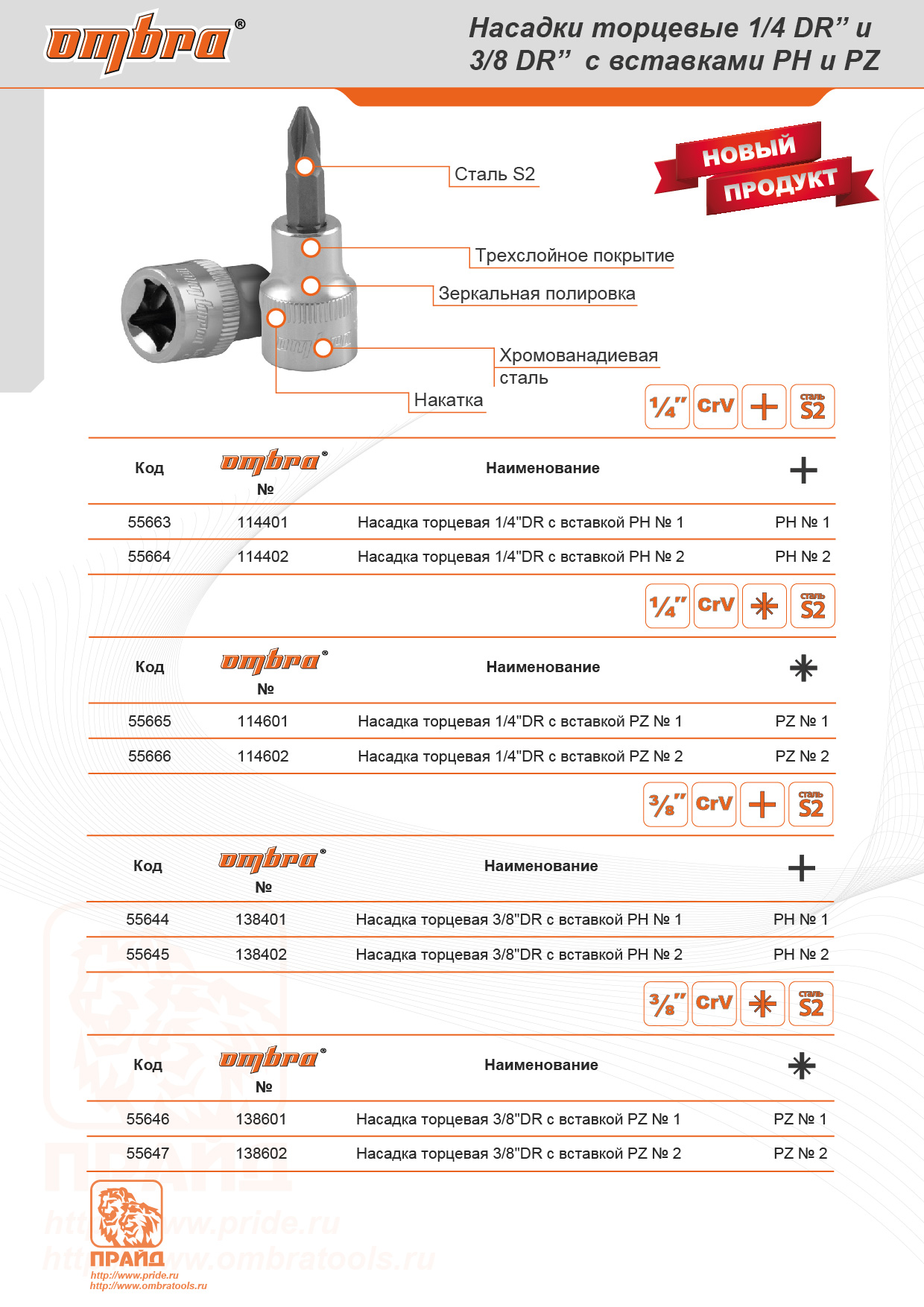 Теги: Насадка торцевая 3/8"DR с вставкой-битой крестовой, РН1