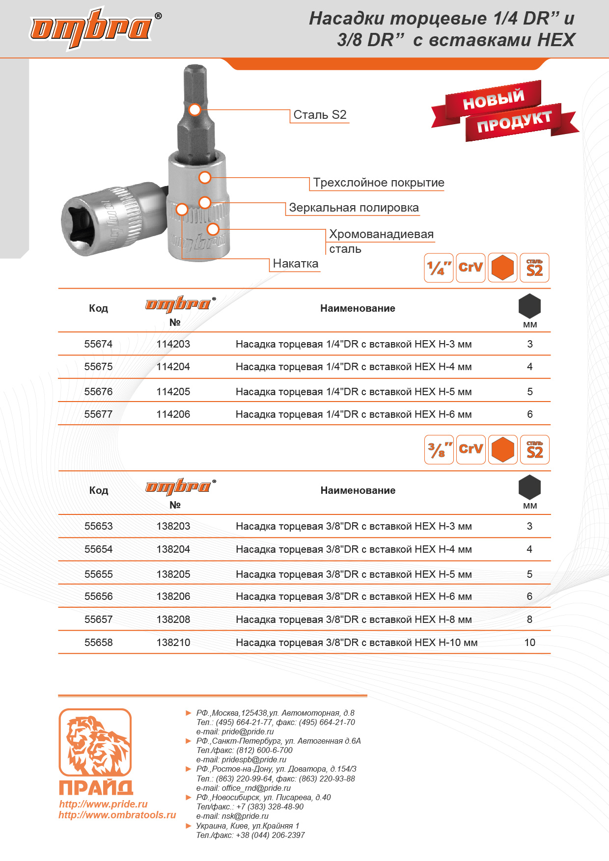 Теги: Насадка торцевая 3/8"DR с вставкой-битой шестигранной, H8