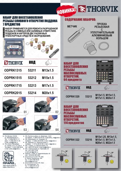 Теги: ODPRK1515 Набор для восстановления резьбы сливного отверстия поддона M15х1.5, 7 предметов