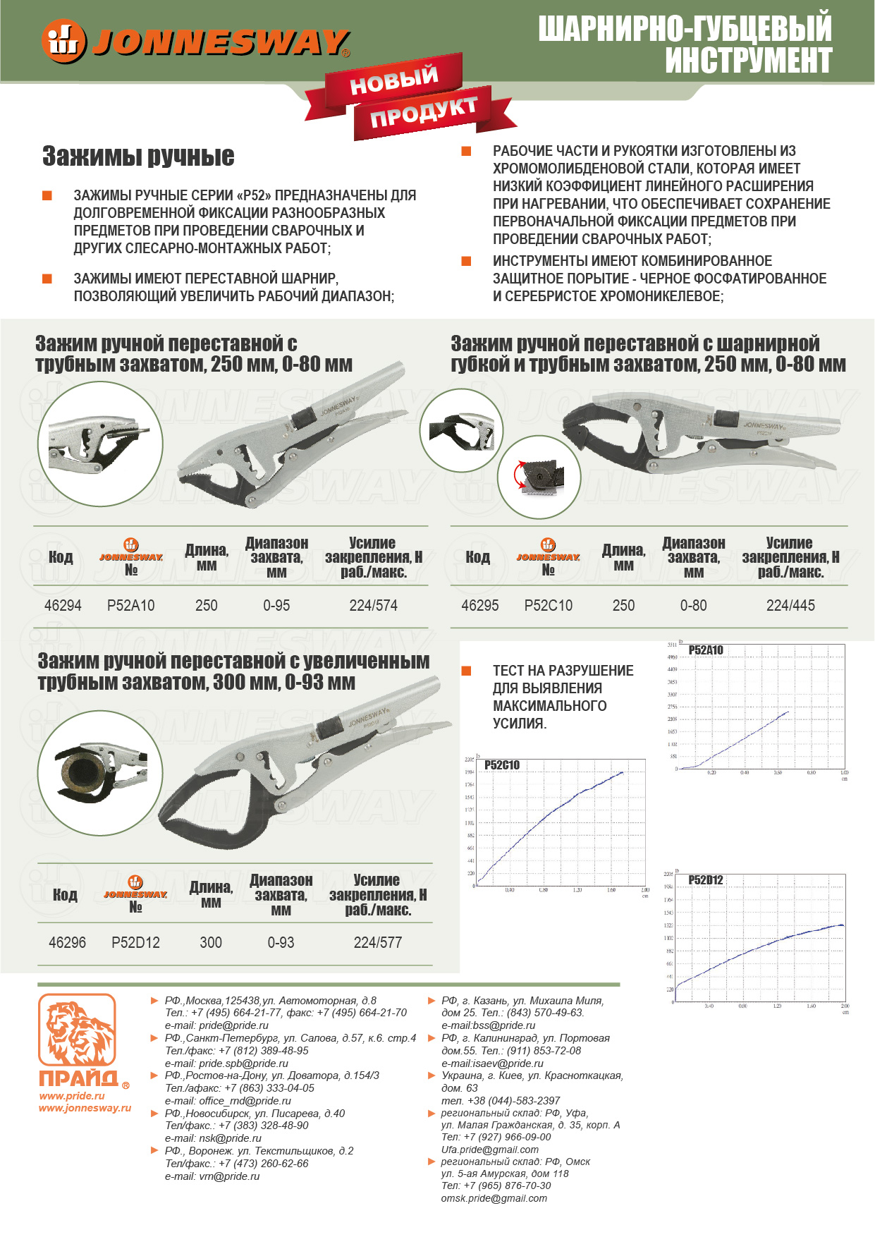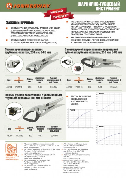 Теги: P52C10 Зажим ручной переставной с шарнирной губкой и трубным захватом, 250 мм, 0-80 мм