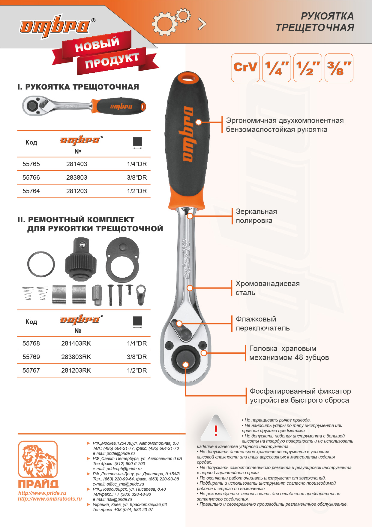 Рукоятка трещоточная 1/2"DR, 48 зубцов