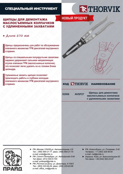 Щипцы для демонтажа маслосъемных колпачков, 270 мм