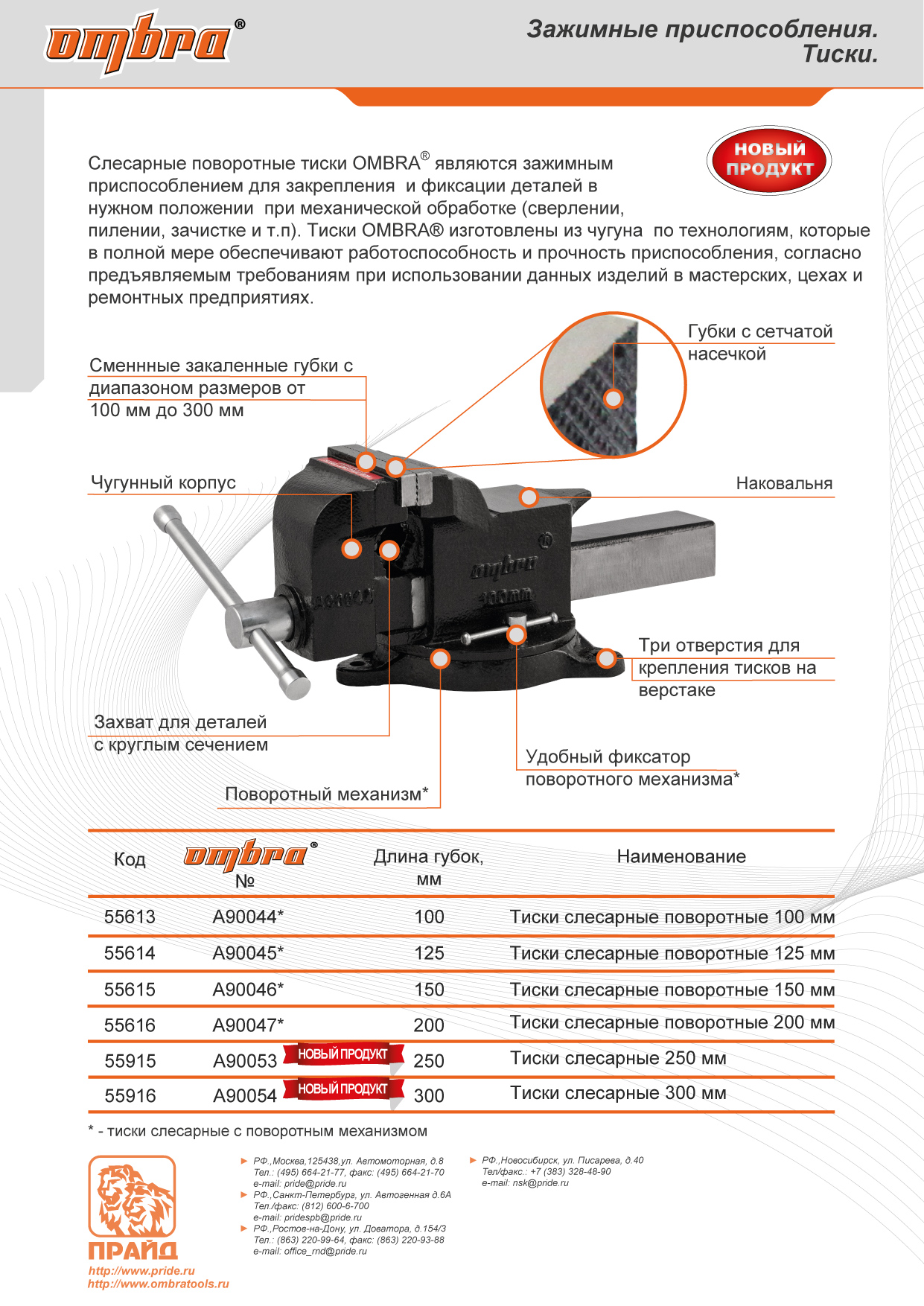 Слесарные поворотные тиски OMBRA® являются зажимным приспособлением для закрепления и фиксации деталей в нужном положении при механической обработке (сверлении, пилении, зачистке и т.п). Тиски OMBRA® изготовлены из материалов и по технологиям, которые в полной мере обеспечивают работоспособность и прочность приспособления, согласно предъявляемым требованиям при использовании данных изделий в мастерских, цехах и ремонтных предприятиях.